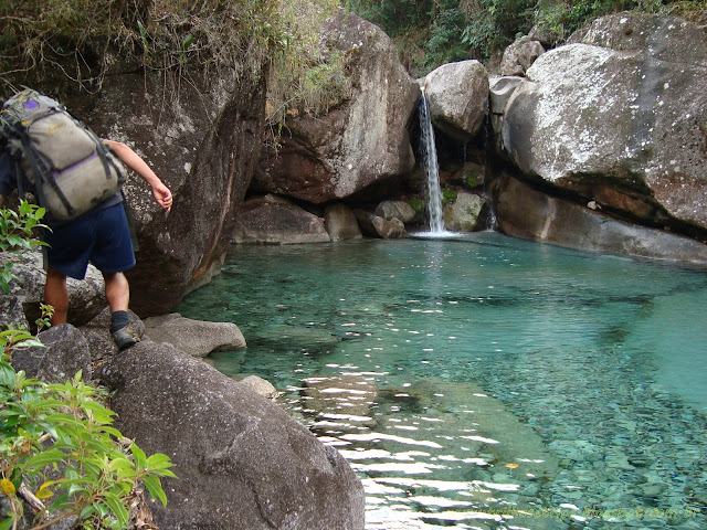 Na foto acima, pode-se ver uma das inúmeras piscinas naturais ao longo da subida pelo Rio Claro.